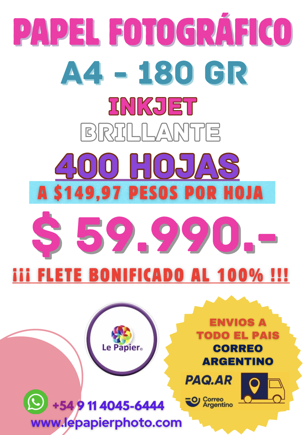 Papel FOTOGRAFICO A4 de 180g - 400Hojas » Le Papier